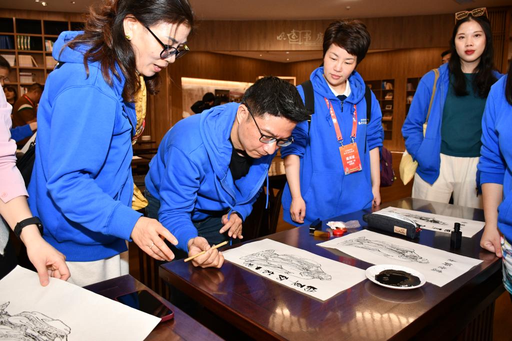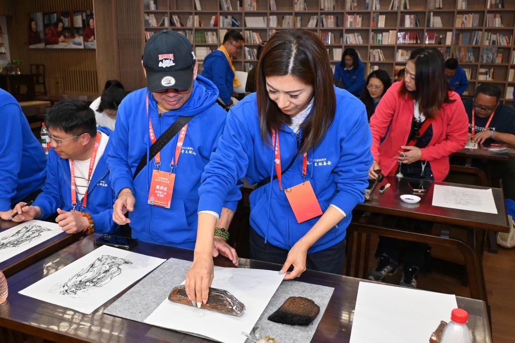 张连三和来访台湾同胞观看了历史文化学院学生表演的拜师礼,台湾同胞身着儒服亲身进行了体验,体悟“师道既尊,学风自善”的文化内涵;参访了教师博物馆,了解中华优良师道传统,景仰历代教育大家和当代师德楷模的崇高风范,并在教育家讲习馆体验了传拓等传统文化项目,感受中华传统技艺的魅力。