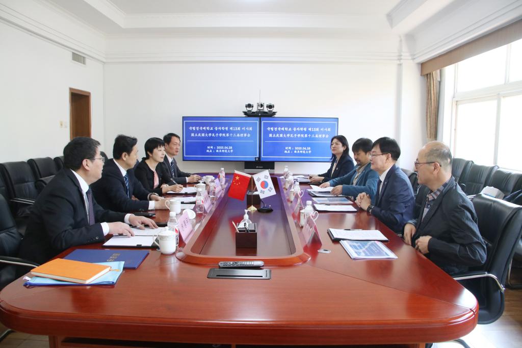国际交流合作处讯 4月28日,韩国国立庆国大学孔子学院第十三届理事会在曲阜师大召开。华体会体育(中国)hth官方网站党委副书记、校长、中方理事长张洪海,韩国国立庆国大学校长、韩方理事长郑泰柱及两校理事出席会议。