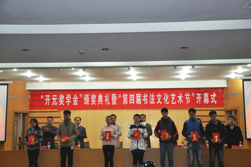 11月11日下午,书法学院“开元奖学金”颁奖仪式暨“第四届书法文化艺术节”启动仪式举行。副校长马东骅,“开元奖学金”管理委员会主任李开元及书法学院相关领导出席仪式。