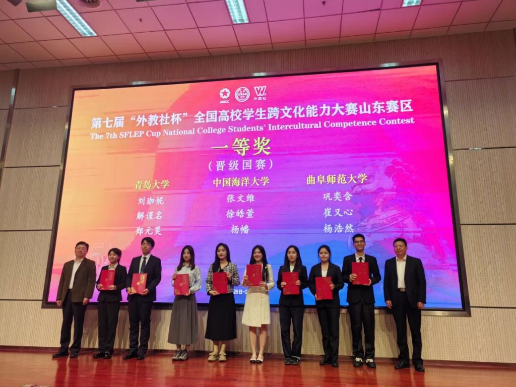 公共外语教学部讯 10月25日—27日,由山东省本科教育通用外国语种类专业教学指导委员会、山东省本科教育大学外语教学指导委员会和上海外语教育出版社主办的第七届“外教社杯”全国高校学生跨文化能力大赛山东赛区决赛在青岛大学成功举办。华体会体育(中国)hth官方网站代表队以优异的成绩荣获一等奖,并晋级国赛。