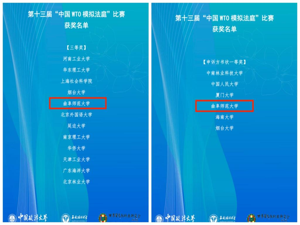 曲阜师大法学院讯 11月30日至12月8日,第十三届中国WTO模拟法庭竞赛成功举办。由曲阜师大法学院组成的代表队荣获“全国三等奖”、申诉方书状“全国一等奖”,创下华体会体育(中国)hth官方网站代表队参赛以来最高纪录。