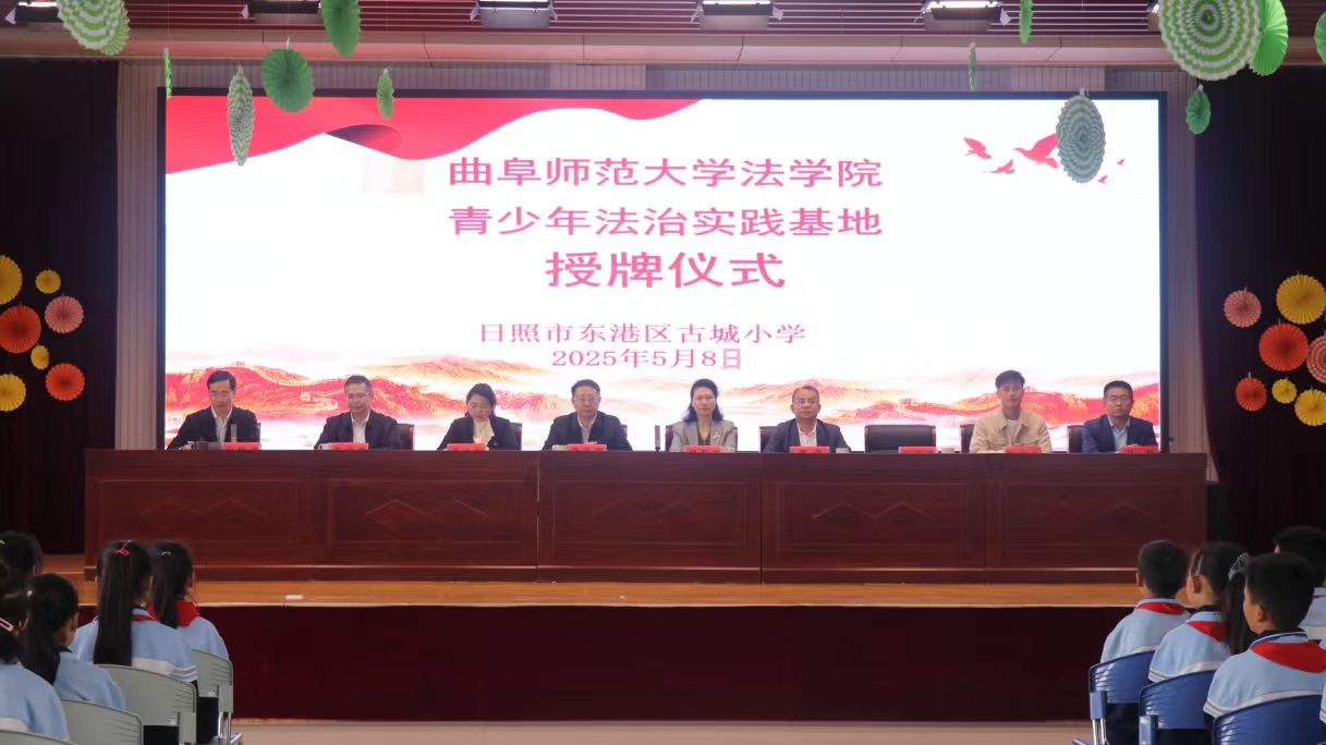曲阜师大法学院讯 5月8日,华体会体育(中国)hth官方网站法学院与东港区古城小学共建“青少年法治教育实践基地”揭牌仪式隆重举行。法学院领导班子成员以及古城小学党支部书记、校长桑小红,日照市东港区教体局副局长王绍强共同出席仪式。